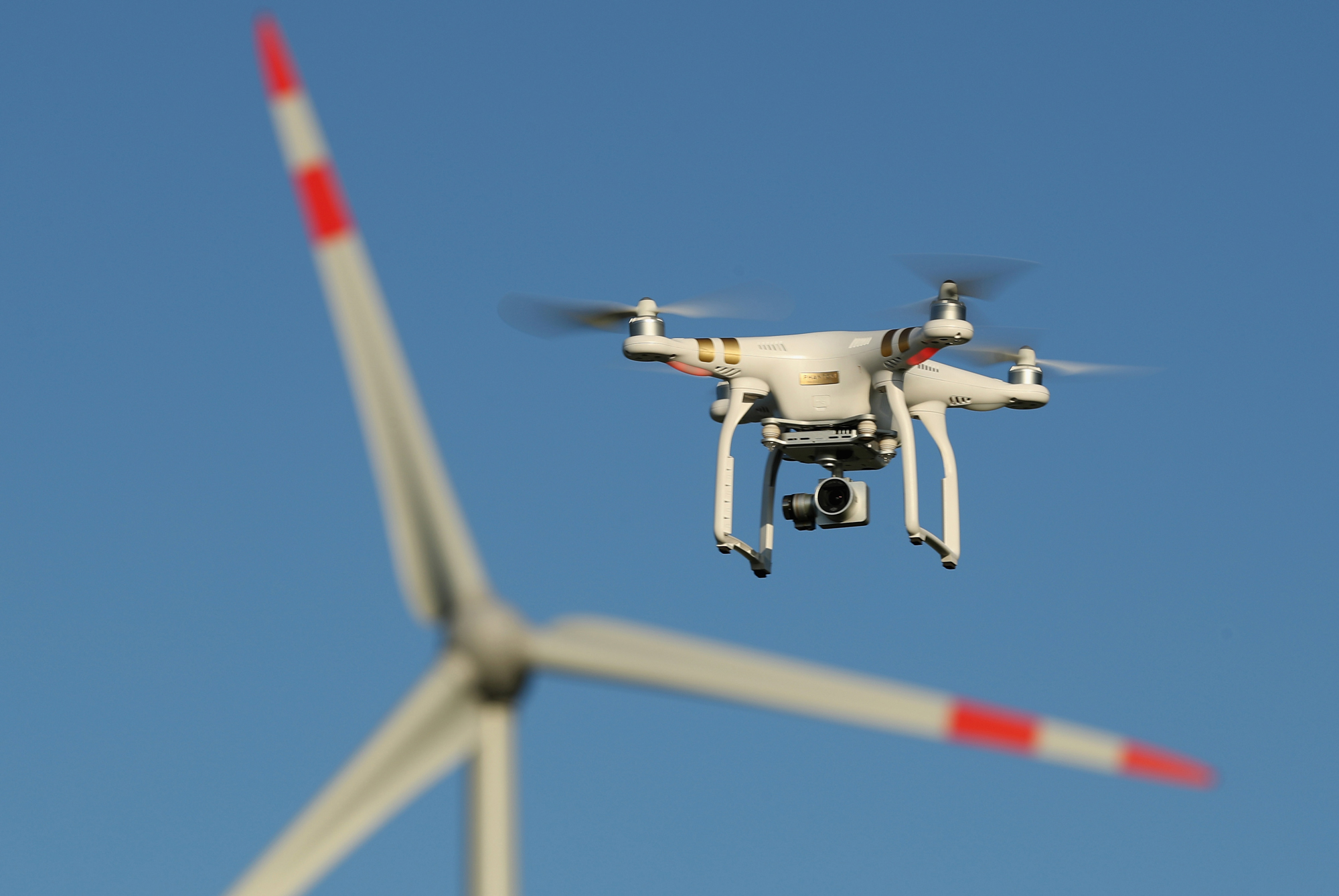 Foto: Un cuadricóptero inspecciona una turbina eólica.