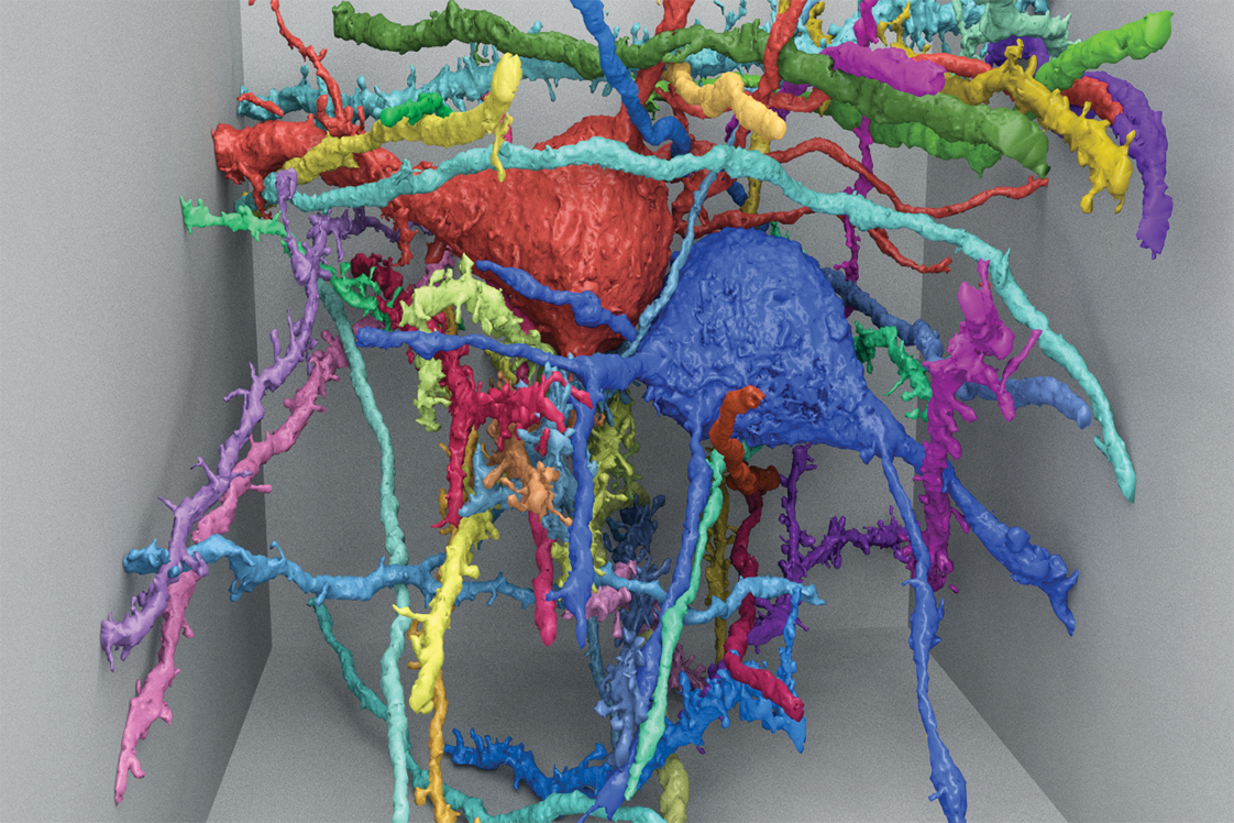 De cada neurona, sin importar su tamaño, nace un bosque de zarcillos conocidos como dendritas, y cada una tiene otra fibra larga y delgada llamada axón para transmitir los impulsos nerviosos a largas distancias, completamente a través del cerebro, en casos extremos, o incluso a todo lo largo de la médula espinal. Pero al mapear un milímetro cúbico, como lo está haciendo MICrONS, los investigadores pueden seguir la mayoría de estas fibras desde el principio hasta el final y así ver un circuito neuronal al completo. Pfister afirma: «Creo que vamos a descubrir cosas. Probablemente estructuras que nunca nos habríamos imaginado y conocimientos completamente nuevos sobre el cableado».