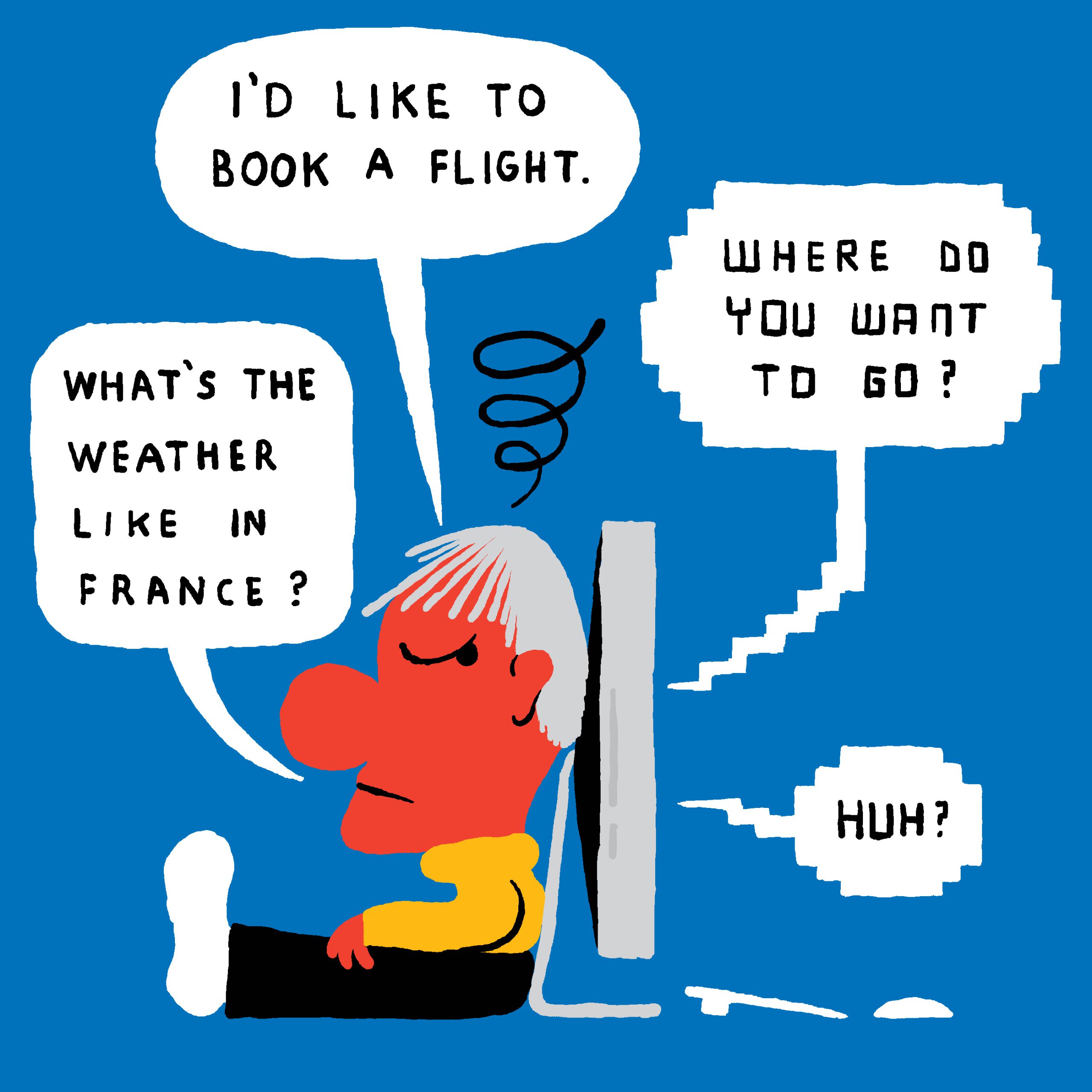 El problema es que a los ordenadores les sigue costando entender el lenguaje humano por toda su complejidad e implícitos. Se están logrando algunos progresos impresionantes, pero los bots de conversación todavía son propensos a la confusión y los malentendidos. Y mientras que el borracho George Washington puede convertir esto en virtud, resulta menos encantador cuando uno intenta reservar un vuelo.