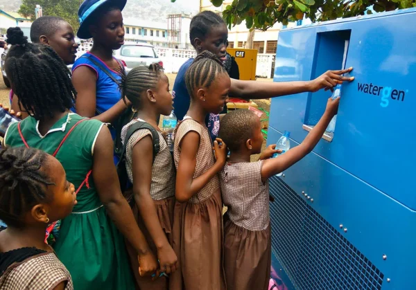 Una unidad Watergen proporciona agua potable a los estudiantes y al personal de St. Joseph’s, una escuela para niñas en Freetown, Sierra Leona. “Cuando se habla de «crisis del agua», no se trata solo de la falta de agua, sino del acceso a agua de buena calidad”, afirma Anna Chernyavsky, vicepresidenta de marketing de Watergen.