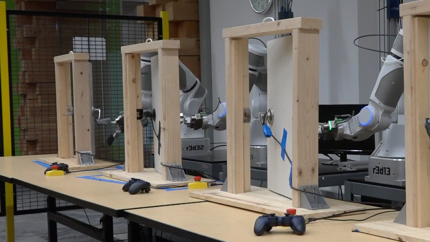 Foto: Cuatro robots practican abrir diferentes puertas. Crédito: Ali Yahya.