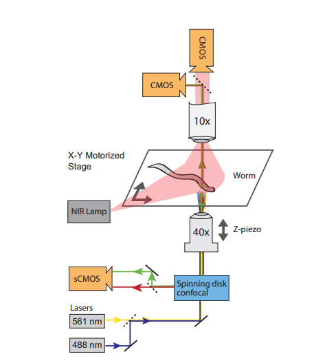 La técnica es relativamente sencilla. Para capturar imágenes de un gusano en movimiento usan un sistema de reconocimiento de imágenes que sigue su movimiento en tiempo real y mueve una plataforma para mantenerlo en el campo de visión de un microscopio confocal.