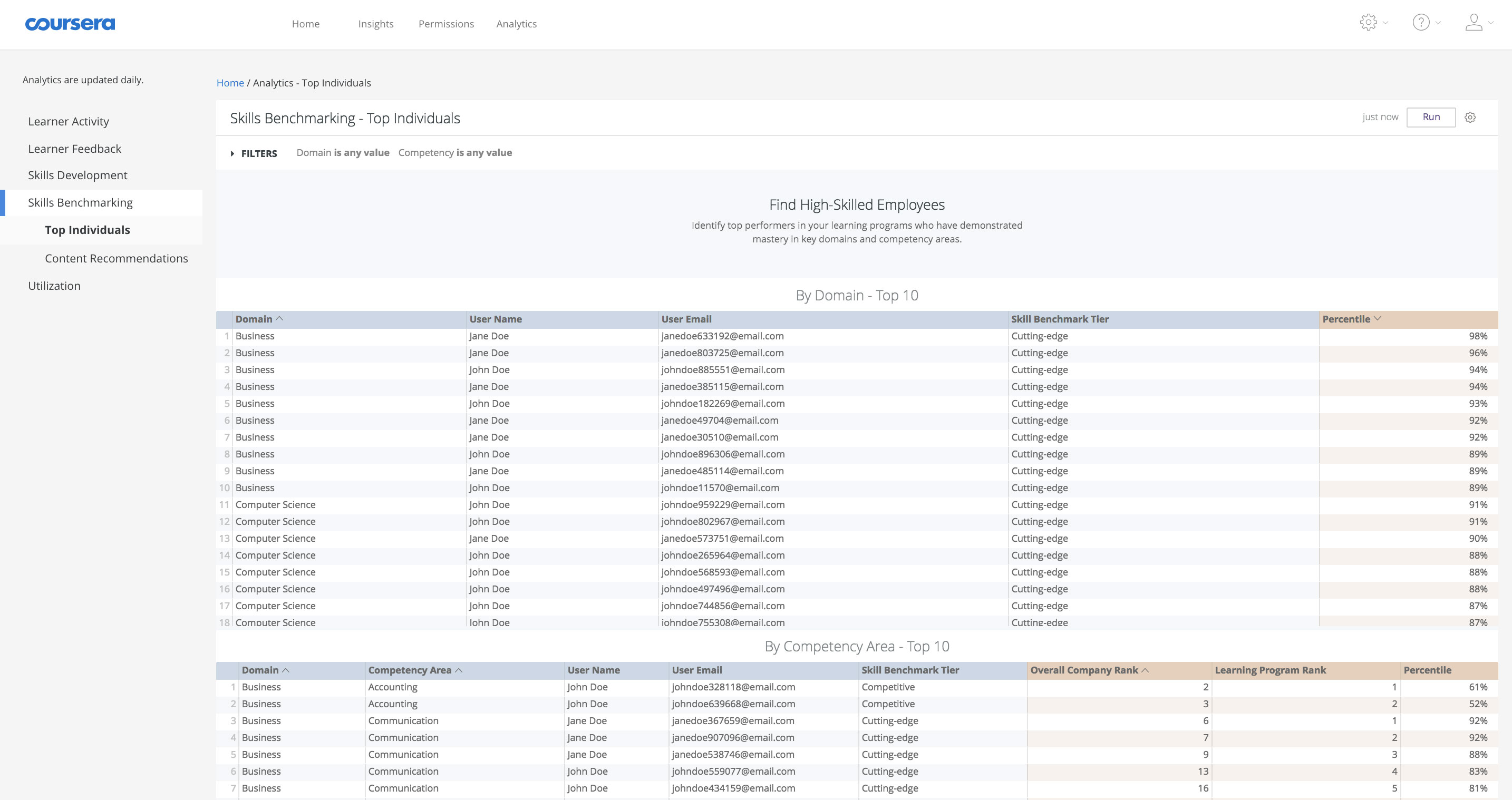 Foto: Las empresas que se suscriban a Coursera podrán ver su rango en comparación con sus competidores en habilidades específicas. Crédito: Coursera.