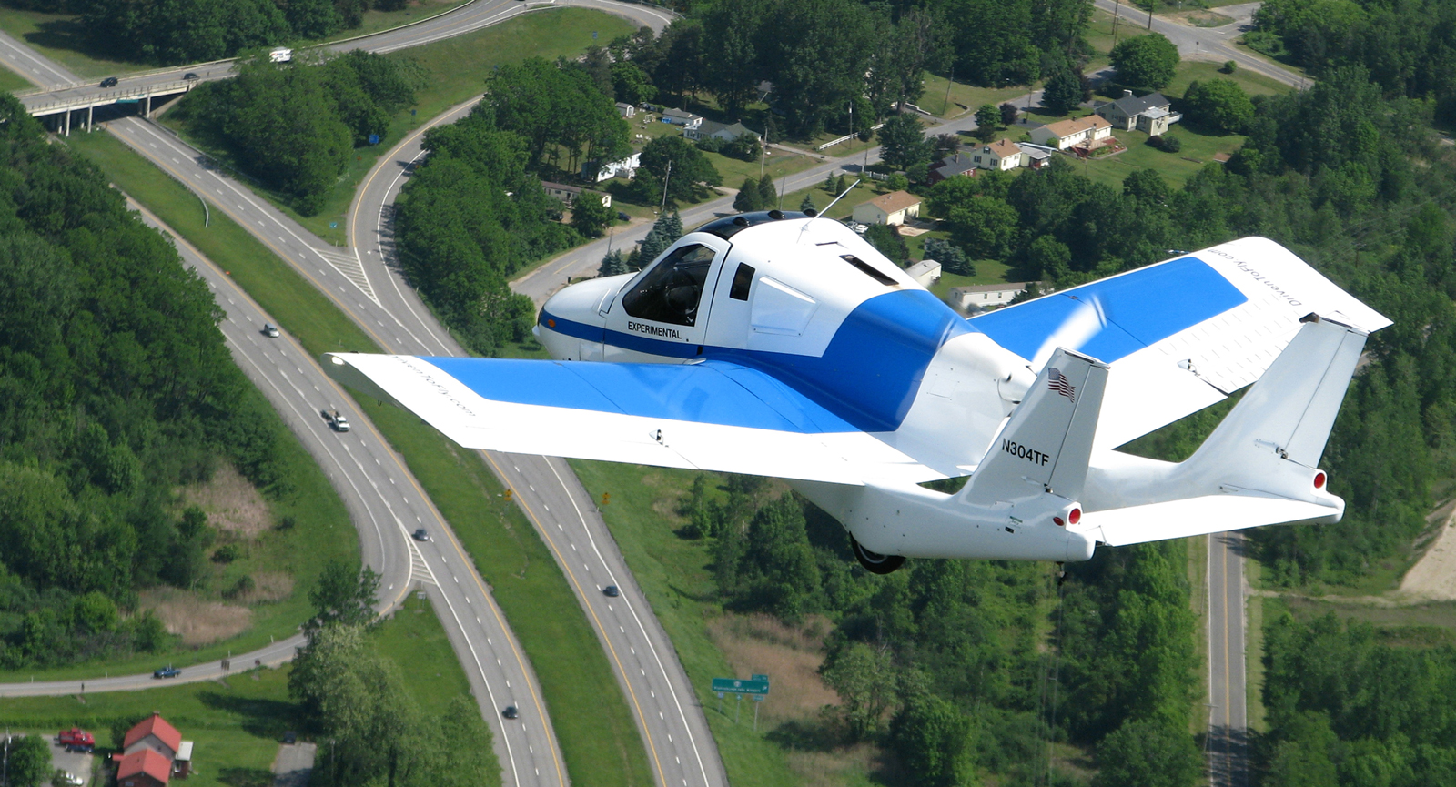 Foto: Las alas de la nave se pliegan para facilitar que circule por carretera. Crédito: Terrafugia.