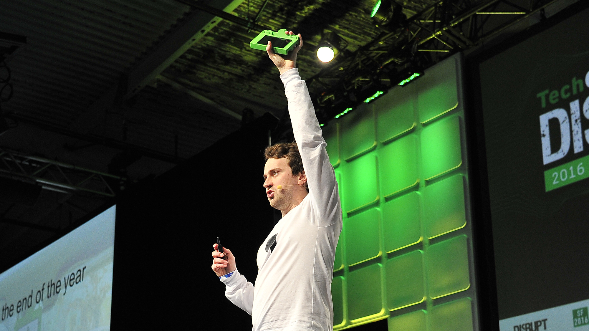 Foto: El fundador de Comma.ai, George Hotz, demuestra su kit de conducción autónoma en un evento de TechCrunch celebrado este año. Crédito: Steve Jennings (Getty Images) / TechCrunch.