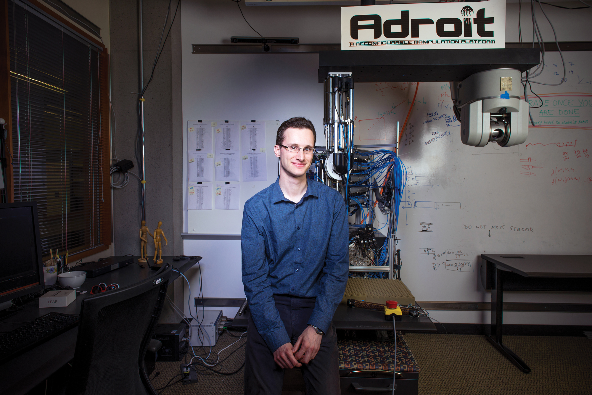 Foto: Sergey Levine ha demostrado que sus algoritmos pueden ayudar a que un brazo robótico se autoenseñe a manipular varios objetos. Crédito: Daniel Berman.