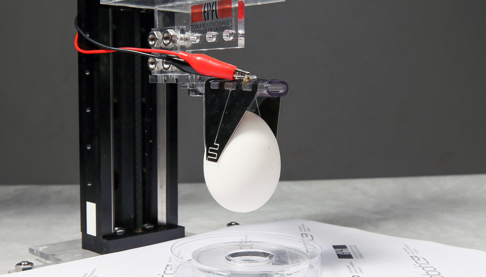 Foto: La pinza electroadhesiva ase un huevo.