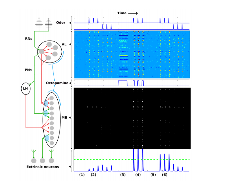 El papel de la octopamina parece haberse aclarado también. Las simulaciones muestran que el aprendizaje puede ocurrir sin octopamina, pero es tan lento que resulta inútil. Esto supondría que la octopamina actúa como un poderoso acelerador del aprendizaje.