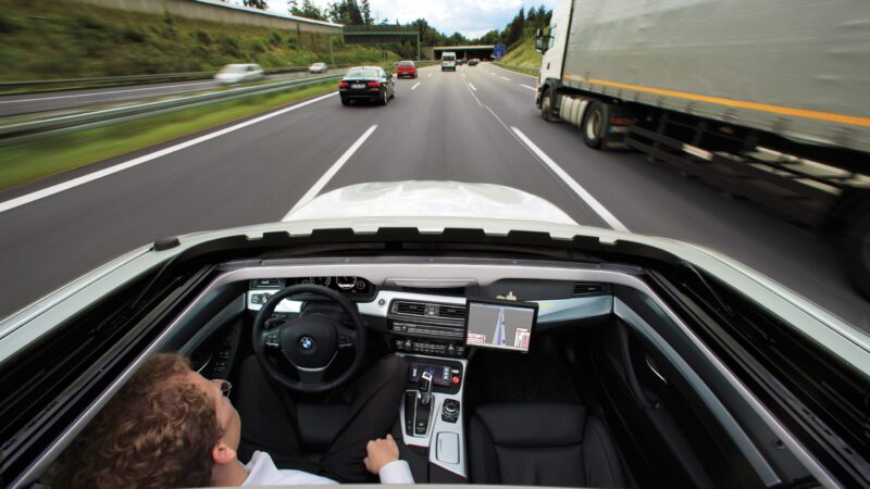Computación El coche automático aún necesita conductor Un BMW Serie 5 plateado cirucla a unos 120 kilómetros por hora en…Will Knight24/10/2013